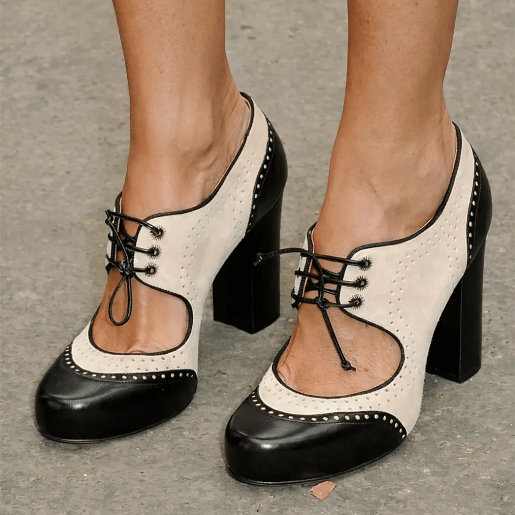 These lace-up heels blend vintage tailoring with a feminine, modern edge. The open cut-out vamp creates a light, breathable feel, while the lace-up front adds a subtle sense of structure—somewhere between classic oxfords and elegant heels.