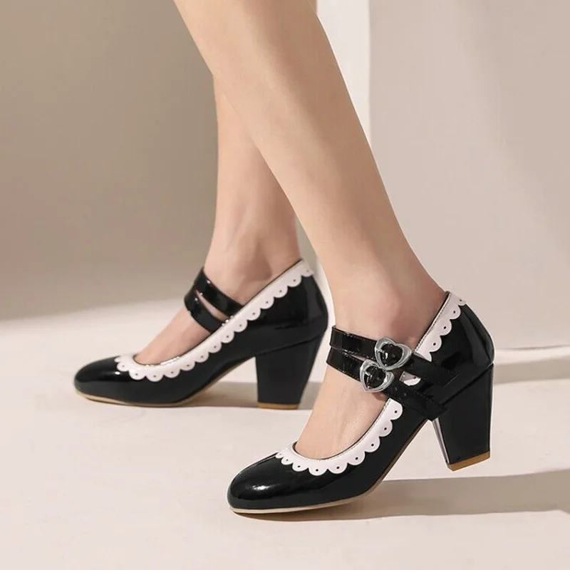 - Round toe and classic Mary Jane silhouette – timeless elegance
